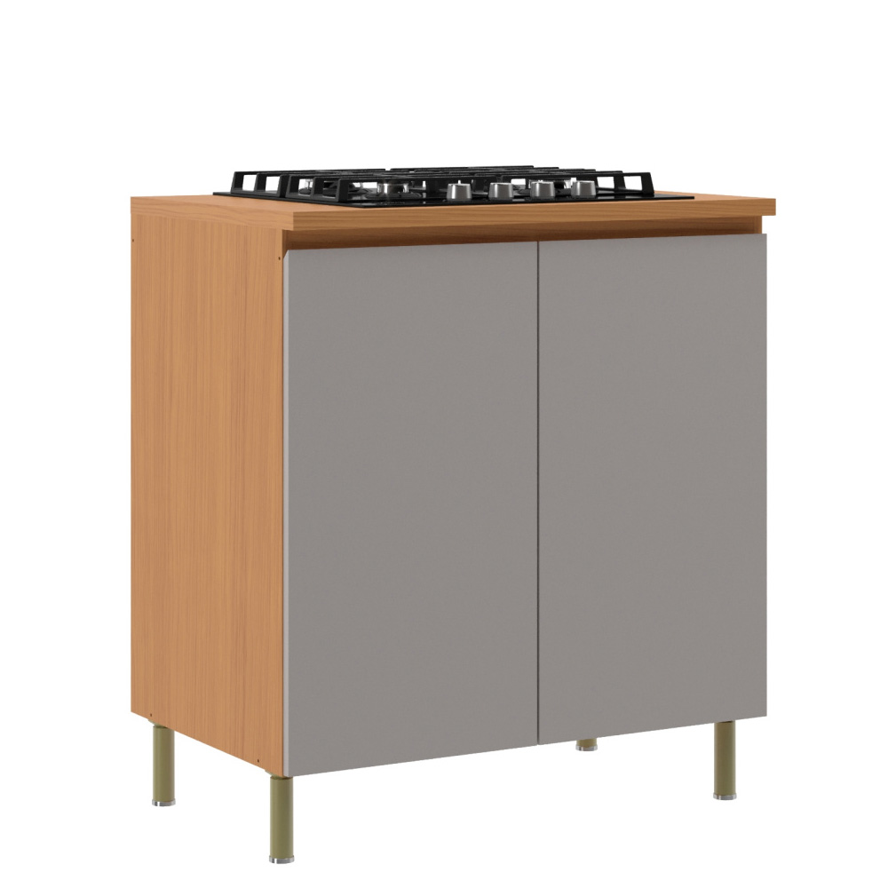 O Balcão Florença 2 Portas oferece praticidade e organização, com prateleira interna e pés Champagne com regulagem de altura, garantindo funcionalidade e um visual elegante para a cozinha.