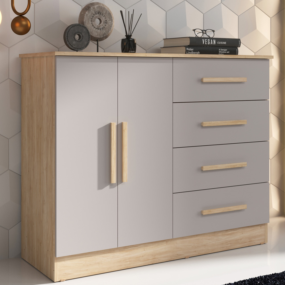A Cômoda Bariloche combina funcionalidade e design moderno, com puxadores em MDF e prateleira interna, oferecendo praticidade, organização e um visual elegante para o ambiente.