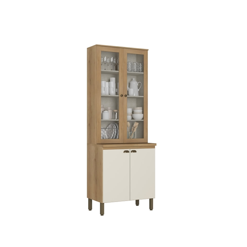 A Cristaleira THB Finesse 4 Portas de Vidro, no padrão Capuccino com Off White, combina elegância e funcionalidade, oferecendo amplo espaço interno, portas de vidro que valorizam o design e um acabamento sofisticado, ideal para deixar a cozinha mais moderna e organizada.